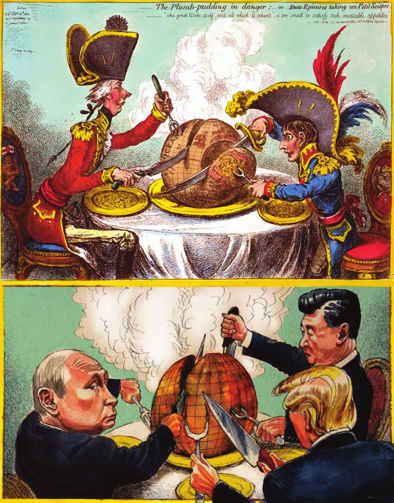 En bas Trump, Poutine et Xi.